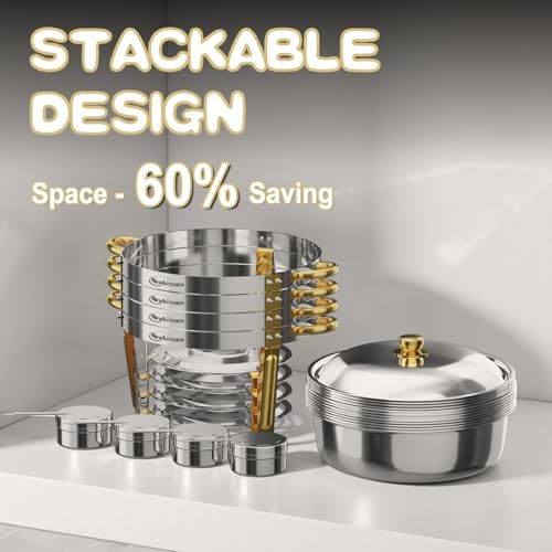 • Chafing Dishes for Buffet 2 Pack, 6QT Round Chafing Dishes for Buffet [Elegant Gold and Silver Colors] Stainless Steel Chafing Dish Buffet Set for Any Party
