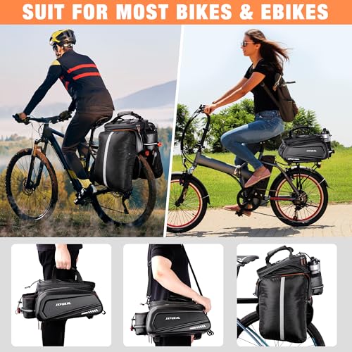 • JXFUKAL Bike Bags for Bicycle Rear rack - 9.5L/17L/40L Hard Shell Waterproof Bike Ebike Trunk Pannier Saddle Seat Bag Carrier with Reflector, Rain Cover & Shoulder Strap for Commuter Travel Outdoor
