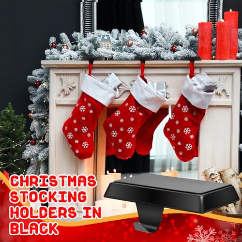 • 6 Pack Metal Christmas Stocking Holders for Mantle Heavy Duty Stocking Hangers Stocking Hook Christmas Ornaments for Counter Tables Window Fireplace Mantle Decoration (Black)