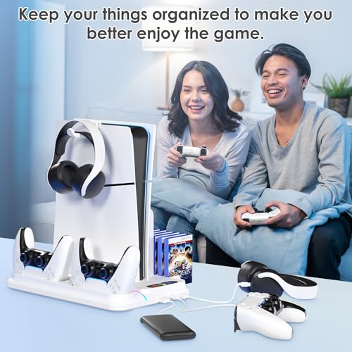 • PS5 Cooling Station for PS5/Slim/Pro Disc Digital Console,PS5 Fan Cooling Fan with Dual PS 5 Controller Charger,3 Level Fan, RGB Light,12 Slot, PS5/Slim/Pro Stand for PlayStation 5 Console Accessories