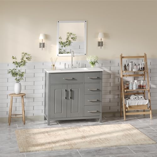• VanAcc 36" Bathroom Vanity with Single Sink Combo, Modern Undermount Small Bathroom Sink Cabinet w/ 37" Countertop, 2 Soft Close Doors & 4 Drawers, Solid Wood Bathroom Dresser Storage Cabinet, Grey