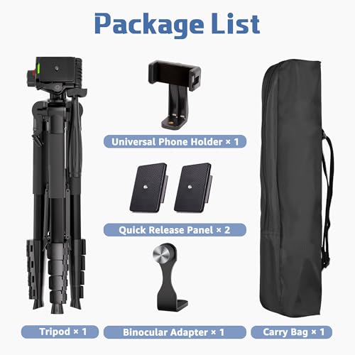 • Binocular Tripod, 72” Spotting Scope Tripod Stand with Binocular Adapter and 2 QR Plates, Travel Camera Stand with Phone Holder/Carry Bag, Compatible with Binoculars/Spotting Scope/Camera/Phone