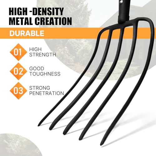 • KOLEIYA Pitchfork,5 Tine Garden Fork,Pitchforks for Gardening,Pitch Fork with Long Fiberglass Handle,57inches,Orange