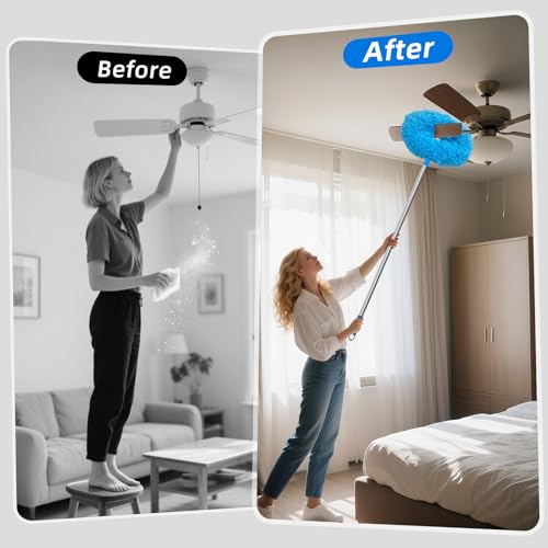 • DRQ Ceiling Fan Cleaner Duster, Reusable Microfiber Duster with Extension Pole, 13 to 48 Inch Fan Blade Cleaner, Removable Dusters for Cleaning Walls Bookshelves Door Window Top (Blue)