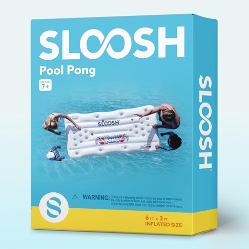 • SLOOSH Summer Pool Games Inflatable Pong Table Float for Adults 6x3 FT Party in Summer Pool Floats, Pool Lounge Floating Raft Toys and 10 Pong Balls, Inflatable Party Fun Games