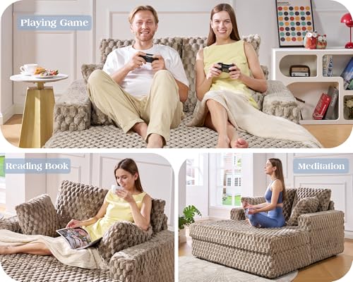 VanAcc 53 Inch Upholstered Chaise Lounge, Plush Sleeper Chair with Throw Pillows and Armrests, Sofa Bed Indoor for Living Room, Brown, 53“x58"x35"