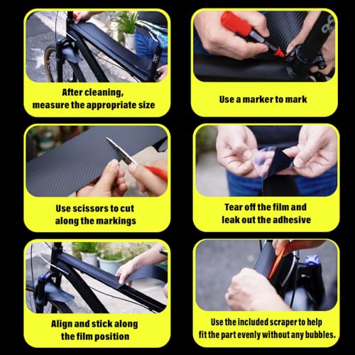 • CNC Bike Frame Protection Tape,Bicycle Frame Protector Sticker-Frame Protection Paint Film 3m(4”x118”), Carbon Fiber Pattern Bike Frame Guard Wrap for Mountain Bike/Gravel/MTB/Road Bike etc.Black-3k