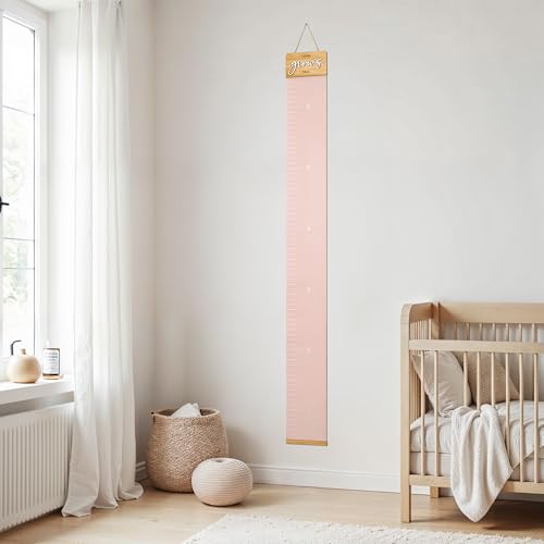 KIBAGA Beautiful Growth Chart for Wall - Cute Height Chart to Easily Track Your Kids' Growth and Milestones - Essential Baby and Toddler Playroom Decor That is Great for Gifting and Creates Lasting Memories, Pink