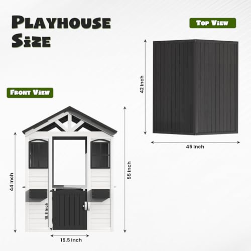 • All Spruce Outdoor Kids Playhouse, Toddler Playhouse Wooden Playhouse for Kids Ages 3-10, with Sink, Stove, Flower Pot Holders, Phone, Kitchen with Food Kitchenware Tableware, 42" x 45" x 55", White