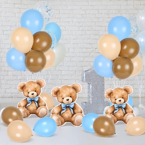YLOLUL 4 Sets Balloon Stand Kit for Table Bear Baby Shower Tables Centerpieces with Balloon Boy Baby Shower Decorations for Bear Theme Gender Reveal Birthday Party Table Decorations Supplies, Brown, Beige, [Unknown], 8 inches