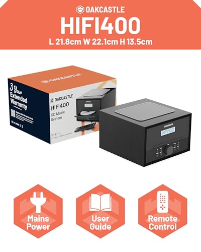 • Home Stereo System with CD Player Bluetooth & Radio | 40W FM Radio, Solid Wood Build, 30 Presets, and Alarm | Multi Format Support, CD Player for Home, Compact Music System | Oakcastle Hifi400