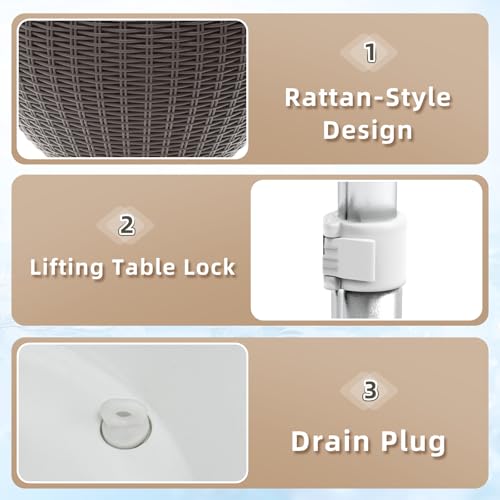 • SHAREWIN Patio Cool Bar Table, Height-Adjustable Outdoor Bar Tables 8 Gallon Beer and Wine Cooler, 3-in-1 Rattan Style Ice Cooler with Drainage Plug for Pool Party (Grey)