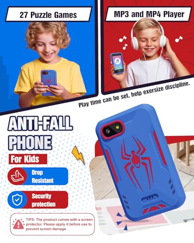 Lizzbey Kids Smart Phone, Spider Toys Phone for Boys 3 4 5 6 7 8 Years Old, Dual Camera, 3.5'' Touchscreen Kid Phones, Educational Toy for Toddler Kids Christmas Birthday Gifts, ABC Learning, Habit Tracker, Blue, child-size