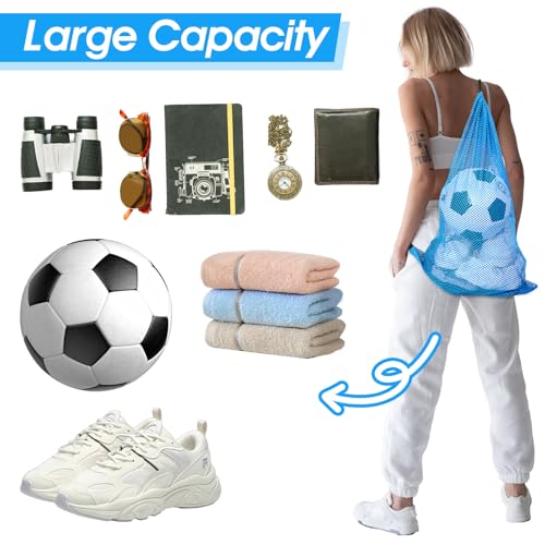• KFHENSOMR 2 pcs Mesh Bag Oversized, 19" x 27" Mesh Snorkel Gear Bags, Large Drawstring Net Bag for Diving Snorkeling, Fins, Swimming Gear, Beach and Sports Equipment Balls Collect(Black & Blue)