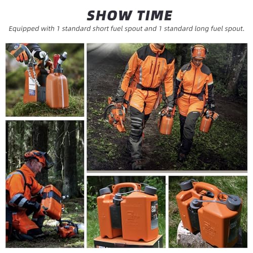 shiosheng Fuel Container with Spill Proof Smart Control Spout with Bonus Spout Extender, Fuel Can 5 L + 2.5 L Oil 0000 881 0113 With Two tool carriers for Shtil Chainsaw – Orange