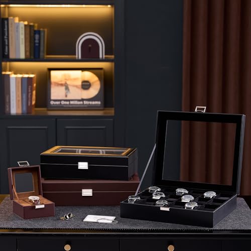 • ProCase Watch Box Organizer for Men, 18 Slot Watch Display Case With Glass Lid, PU Leather Watch Storage Mens Watch Case, Watch Holder Organizer for Men Women -18 Slot, Allblack