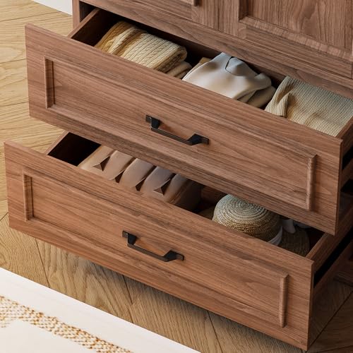• LIKIMIO Armoire Wardrobe Closet with 2 Doors and 2 Drawers 70" H x 28" W Wooden Bedroom Freestanding Wardrobe Combination for Hanging Clothes, Walnut