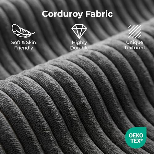 • LIKIMIO 71.6" Oversized Chaise Lounge Chair Indoor, Upholstered Sofa Bed with 2 Cup Holders & 2 Storage Pockets, No Assembly Corduroy Cloud Couch, Reading Chair for Living Room (Dark Gray)