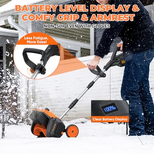 Gisam Cordless Snow Shovel, 3500W Battery Snow Blower with Dual 6.0Ah Anti-Freeze Batteries & Base Plate, 25.6Ft Throw, 13Inx7In Brushless Snow Shovel with Wheels for Driveway Sidewalk Snow Removal, orange