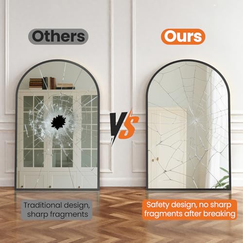 • Sweetcrispy 24"x36" Arch Black Bathroom Wall Mirror, Metal Frame Vanity Mirror for Bedroom, Entryway, Living Room