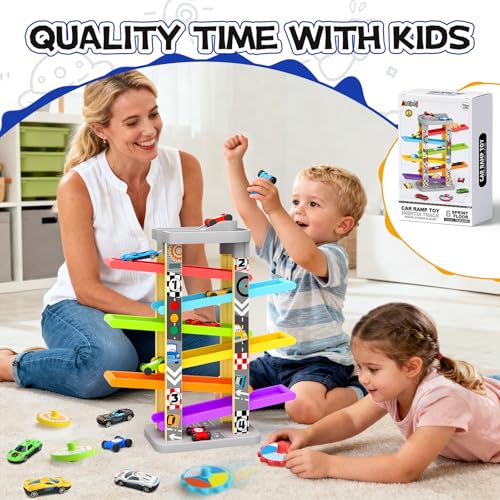 • aotipol Montessori Toys for 2 3 Year Old Boy Girl, Car Ramp Toy Includes 12 Cars & 4 Spinning Tops, Race Car Track Toddler Toys for Age 2-4, Baby Boy Girl Kid Birthday Gift for 18+ Month, Hollow Track