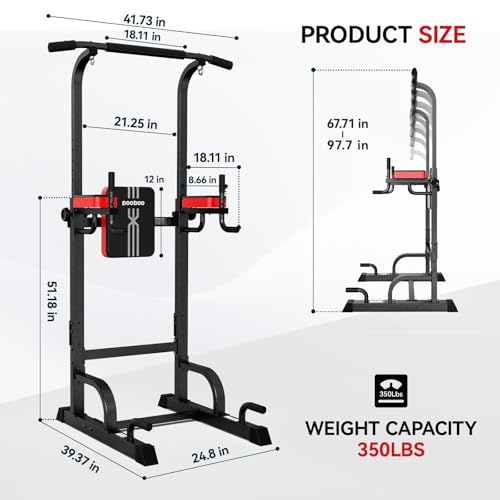 • Pooboo Power Tower Dip Station Pull Up Bar for Fitness Home Gym Workout,Multi-Function Adjustable Height Fitness Strength Training Exercise Equipment,with Power Elastic Ropes,Black Red