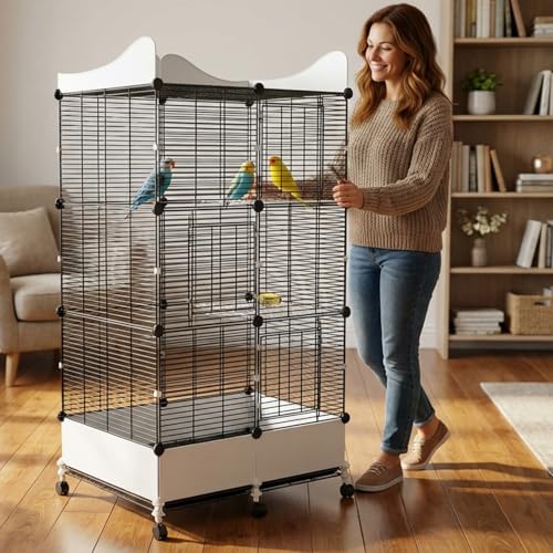 • Encrypted Bird Cage Large Bird Cages 57-Inch, Top Storage Space, Bottom Splash Guard with Essential Bird Supplies – Durable & Spacious Aviary – Budgies & Cockatiels