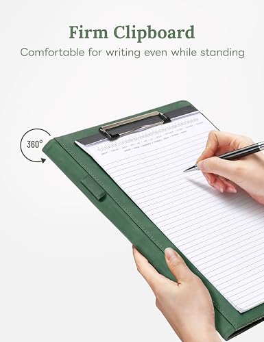 Clipboard Folder Padfolio, Mymazn Writing Portfolio Faux Leather Clipboards with Cover for Legal Pad Holder Letter Size A4 8.5 x 11 for Business Conference Notepad Clip Boards, Floral Green