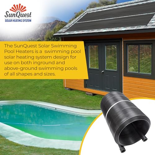 SunQuest Solar Pool Heater Panels - 2 (2ft x 10ft) Collectors w/Hose Adaptors - Solar Water Heater for Above Ground & Inground Pools - DIY-Tube on Web Design Panel-Polypropylene UV Resistant, On Ground, 2- 2ft x 10ft