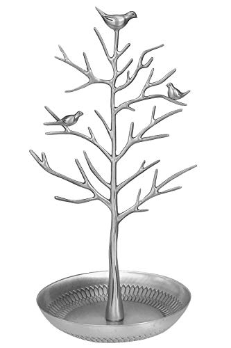 • JQWORKLAND Silver Birds Tree Jewelry Stand Display Earring Necklace Holder Organizer Rack Tower-Silver