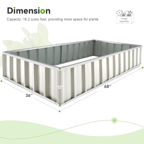 KING BIRD Raised Garden Bed 68" x 36" x 12" (2 Packs) Galvanized Steel Metal Outdoor Planter Kit Box for Vegetables, Flowers, Fruits, and Herbs, Ivory, 68"x36"x12"