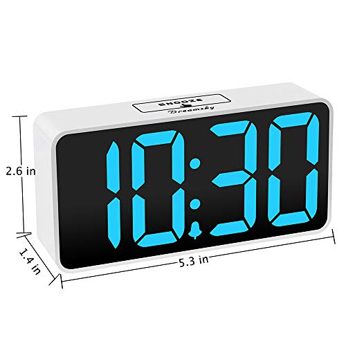 DreamSky Small Digital Alarm Clock for Bedroom, Large Big Numbers Display with Brightness Dimmer, Electric Bedside Desk Clock with USB Charging Port, Adjustable Alarm Volume, USB-C Adapter Powered, White Case+blue Digit