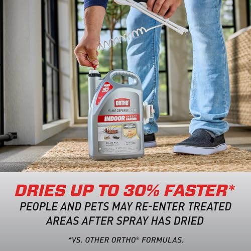 • Ortho Home Defense Max Indoor Insect Barrier with Extended Reach Comfort Wand, Kills Ants, Roaches, Spiders, Fleas and Ticks, 1 gal.