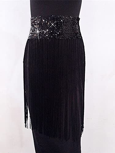• Formery Sequin Belly Dance Skirt Black Tassel Hip Scarf Shiny Dance Warp Sequin Fringe Skirt Belts Nightclub Ball Party Rave for Women and Girls