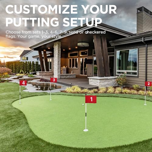 KINGTOP Miniature Golf Flagstick, Practice Putting Green Flags for Yard, Golf Pin Flag Hole Cup Set, 3ft White Flagpole, Indoor | Outdoor, Red Flag Numbered #1 2 3, 3-Pack, White Pole w/ Red Flag#1,2,3, 3-Pack, 35"L x 8"W