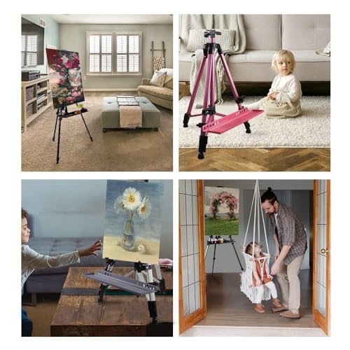 • RRFTOK Art Easel Stand for Painting and Sign - Aluminum Metal Artist Tripod Adjustable Easels for Display Height from 21 to 61Inches - Canvas Stand with Paintbrush Tray for Artists Adult Holder
