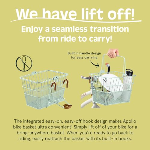 • Retrospec Apollo Front Bike Basket With Detachable Steel Mesh Design - Removable Bicycle Basket With Built-in Handle for Shopping & Storage - 9.5in X 7.5in X 14in