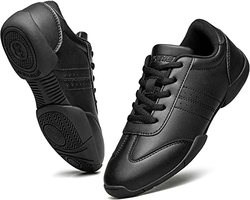 BAXINIER Youth Girls Black Cheerleading Dancing Shoes Athletic Training Tennis Walking Breathable Competition Cheer Sneakers - Black 13.5 Little Kid, Black 2116-girls