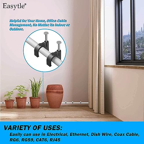 Easytle 400pcs Black Cable Clips 4/6/8/10mm Cable Wire Clips Nail in Cable Clips Cable Tacks Coaxial Nail Clamps Cable Nails for Cords Cable Management RG6 RG59 CAT6 RJ45 Ethernet Cable Clips Coaxial Clamps