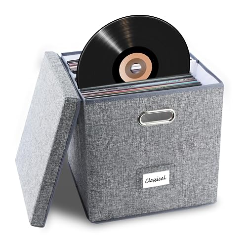 • Sturdy Vinyl Record Storage Box - Album Storage Holds up 50+ Single Record, LP Storage Organizer Crate With Lid, Decorative Moving Box For Records, Solutions to Protect Your Precious Collection Grey