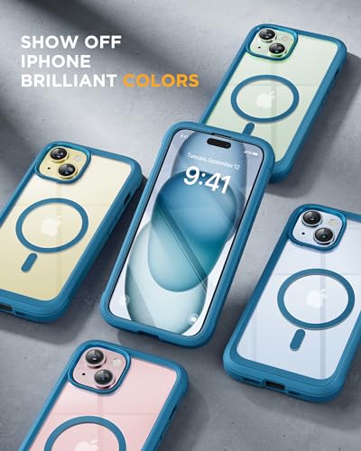• Miracase Magnetic for iPhone 15 Plus Case 6.7'' [Compatible with Magsafe] Full-Body Military Drop Proof 15 Plus Phone Case Cover with Built-in 9H Tempered Glass Screen Protector,Magnetic Blue