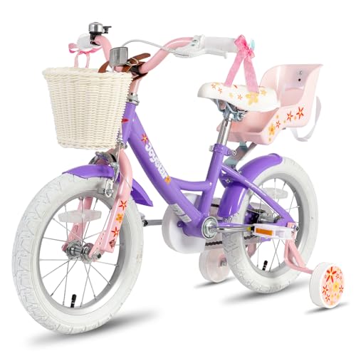 • JOYSTAR Unicorn 14 Inch Kids Bike for 3-5 Years Girls Bike with Doll Seat Children Princess Bikes with Training Wheels Basket Streamer Toddler Girls Bicycle Purple