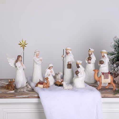 Fovths 16 Pieces Classic Nativity Set Christmas Nativity Stable Starter Figures Resin Decor 7 Inch Holy Family Figurine Set for Christmas Indoor Resin Centerpieces Decor