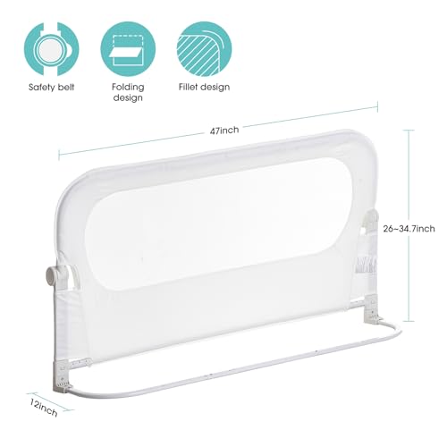 NUTIKAS Baby Bed Rail Guard for Toddlers -46" Toddler Bed Rails for Twin, Full, Queen, King Bunk Size Bed Swing Down Bedrail Extral Tall Child Safety Side Railing Guards for Kids, White, 47 Inch