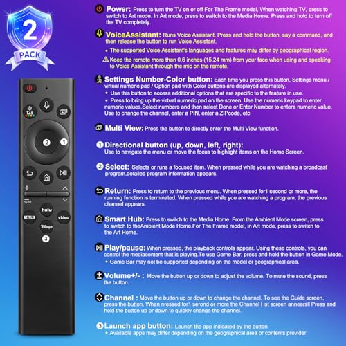 • Replacement-Voice-for-Samsung-Smart-TV-Remote-Control-Universal BN59-01385A Compatible with Samsung Frame Curved QLED Crystal UHD TVs