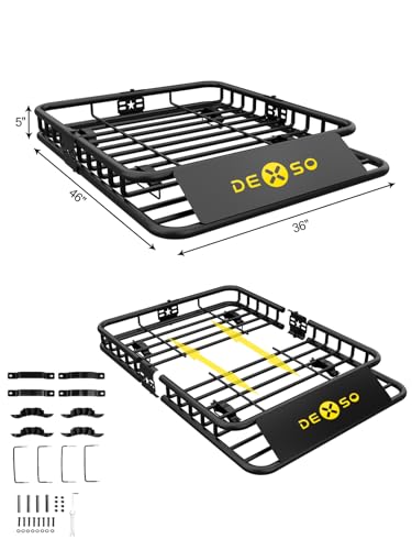 • DEXSO 46" x 36" Universal Roof Rack Basket with Cargo Net, 200 Lbs Capacity Rooftop Cargo Carrier Basket, Heavy Duty Luggage Holder Rack for SUVs, Trucks, Vehicles