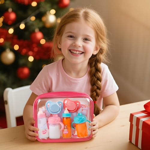 • BABESIDE Baby Doll Accessories – 9 Pcs Feeding Set with Magic Bottles, Pacifiers, Bibs, Diapers & Carry Bag, Pretend Play Kit for 12–15 Inch Dolls